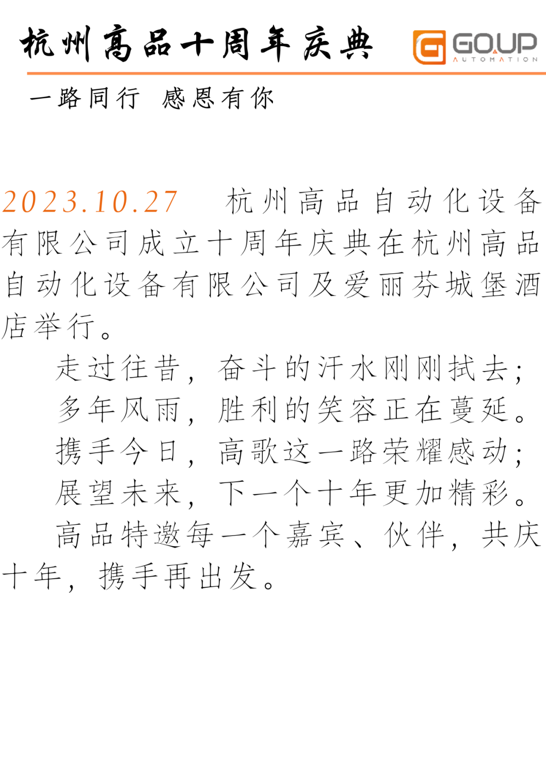 杭州高品十周年慶典 |一路同行 感恩有你 共濟(jì)十載 初心常在